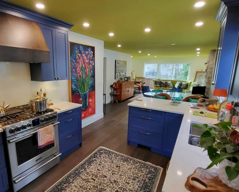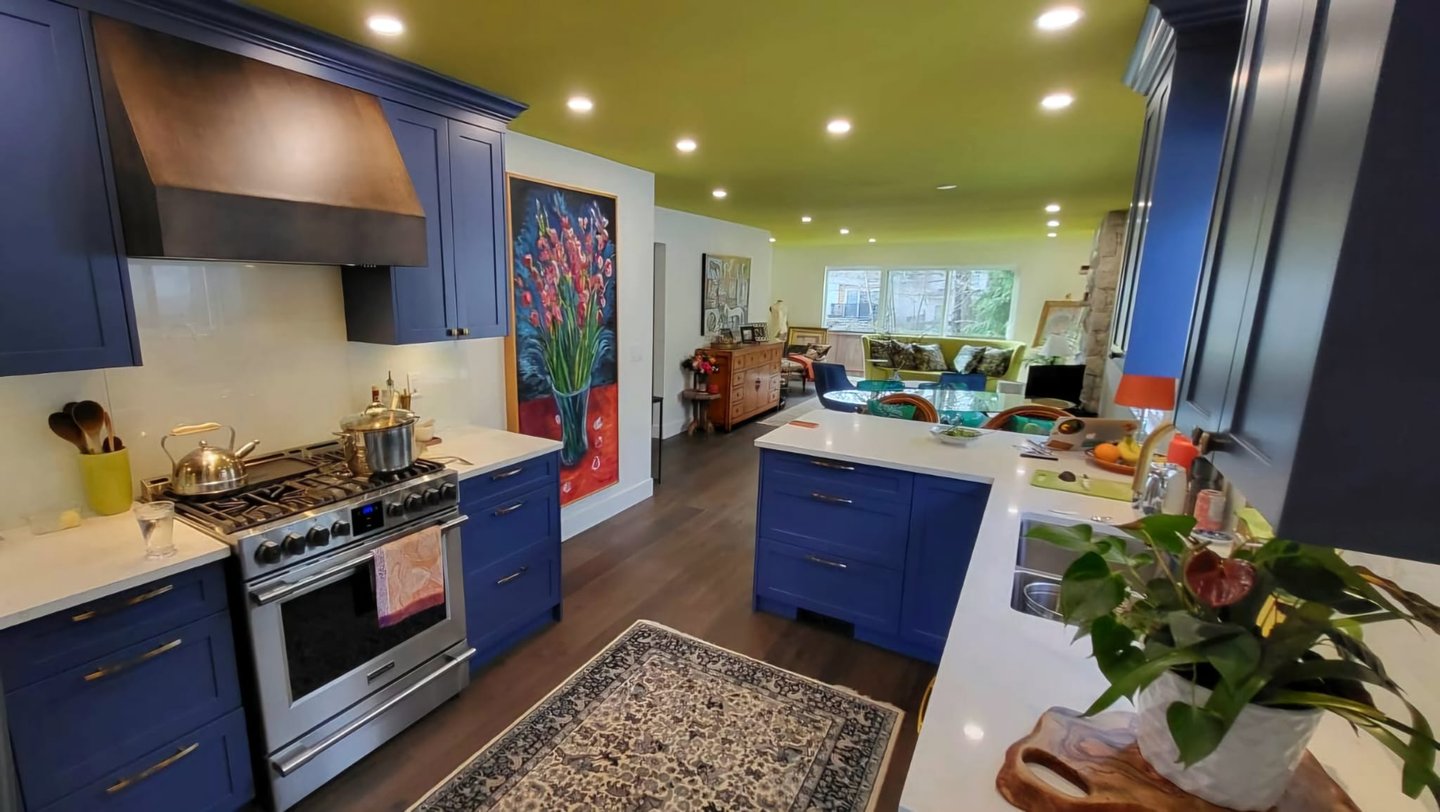 We were tasked with a full house renovation in East Vancouver. The project involved stripping everything down to studs and working with an engineer to re-frame in order to open up the space. After the addition of an ensuite in the master and re-framing almost every wall, it was time to install vibrant finishings throughout.